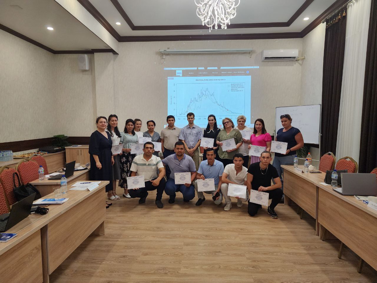 7-11 avgust kunlari “O‘zgidrometda MODSNOW modulini takomillashtirish va seminarlar” mavzusidagi o‘quv seminari bo’lib o’tdi. Ma’ruzalar Dr. Abror Gafurov va Mr. Friedrich Busch tomonidan rus- ingliz tillarida olib borildi. O’zgidromet hamda Gidrometeorologiya ilmiy tadqiqqot instituti hodimlari va yosh izlanuvchi talabalar ushbu seminarda ishtirok etishdi. MODSNOW gidrologik modelini takomillashtirish va undan real vaqt rejimida Markaziy Osiyo mintaqasidagi suv zaxiralarini monitoring qilishda foydalanish bo’yicha, MODSNOW dasturining 4 ta moduli O’zgidromet xodimlari va yosh izlanuvchilarga o’rgatildi. Natijalar gidrometeorologiya xizmati agentligiga taqdim etildi, bu esa suv toshqini prognozlarini, shuningdek, butun mintaqada vegetatsiya davri uchun suv bilan ta’minlanish prognozlarini yaxshilashga yordam beradi.